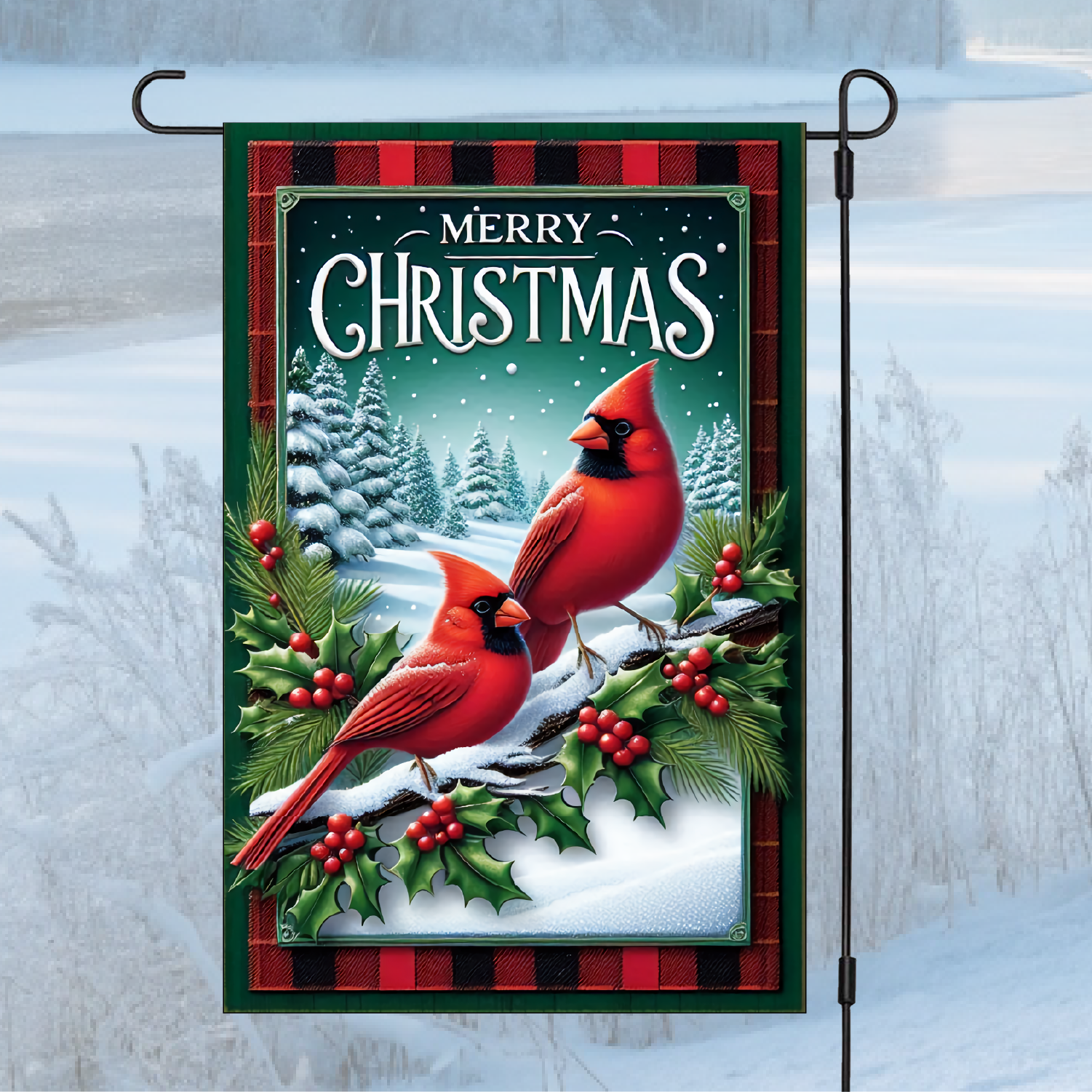 Bring vibrant beauty to your outdoor space with this striking cardinals garden flag! Featuring these beloved red birds in all their glory, this flag adds a pop of color and natural charm to any yard or garden.