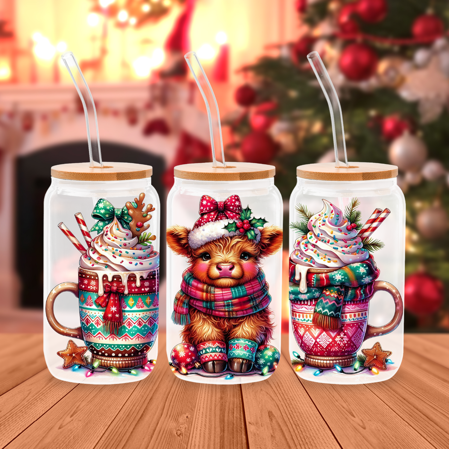 Meet your new favorite holiday companion—our adorable Christmas Highland Cow glass cans! These whimsical drinkware pieces feature an extra-cute festive cow that's sure to bring smiles to your table. Perfect for sipping everything from holiday punch to warm beverages, these sturdy glass cans are built to last through many merry celebrations. Whether you're hosting a cozy gathering or enjoying a quiet night in, this charming bovine buddy adds personality and cheer to every drink. Moo-ve over, boring glassware!