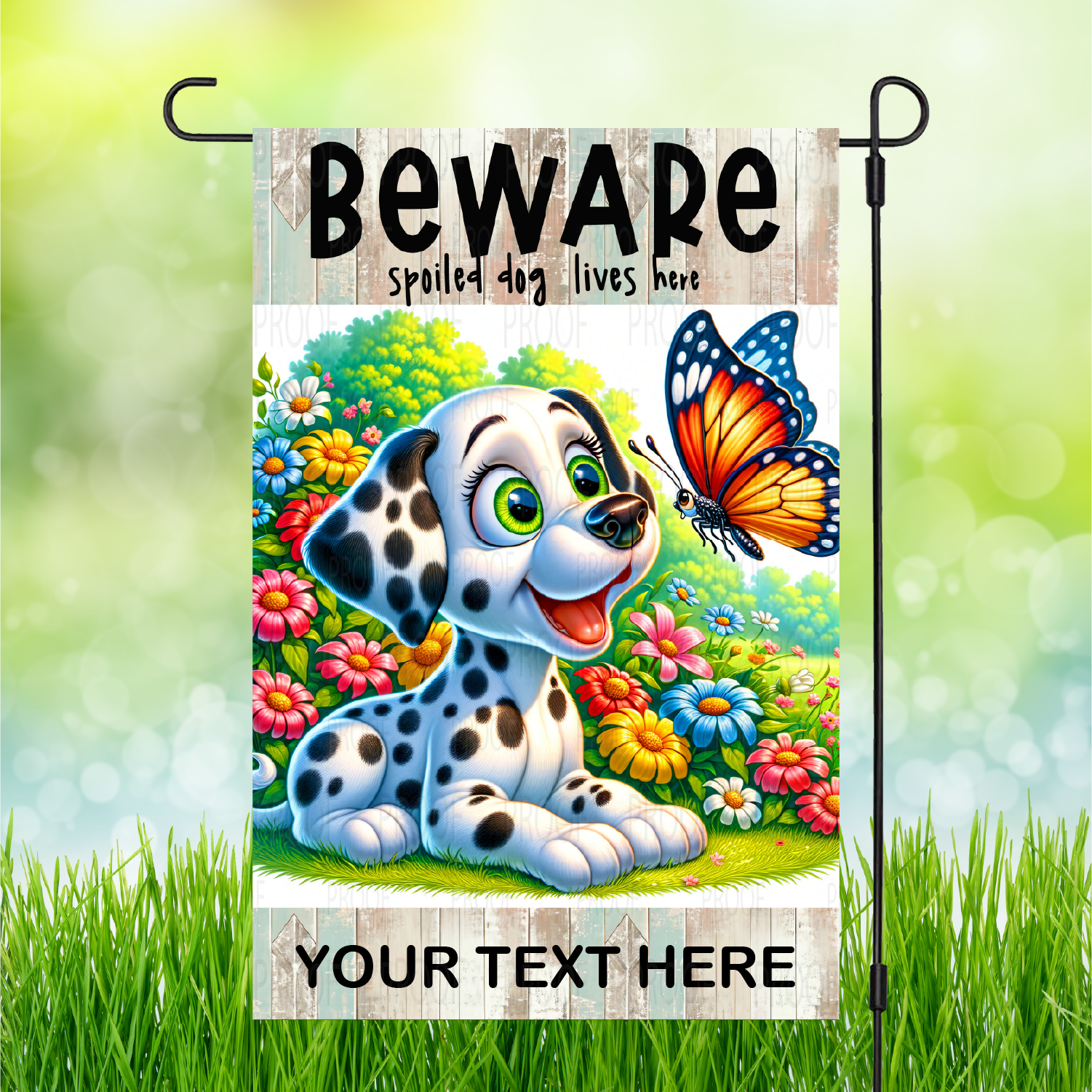 Stand out from the pack with our "Beware" Spoiled Dog Garden Flags! Personalization available to make it truly one-of-a-kind. Let your backyard be the talk of the neighborhood.