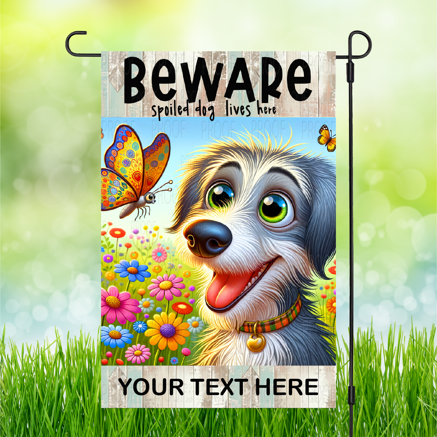 Stand out from the pack with our "Beware" Spoiled Dog Garden Flags! Personalization available to make it truly one-of-a-kind. Let your backyard be the talk of the neighborhood.