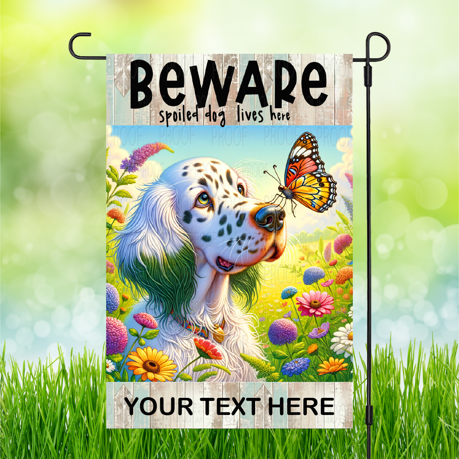 Stand out from the pack with our "Beware" Spoiled Dog Garden Flags! Personalization available to make it truly one-of-a-kind. Let your backyard be the talk of the neighborhood.