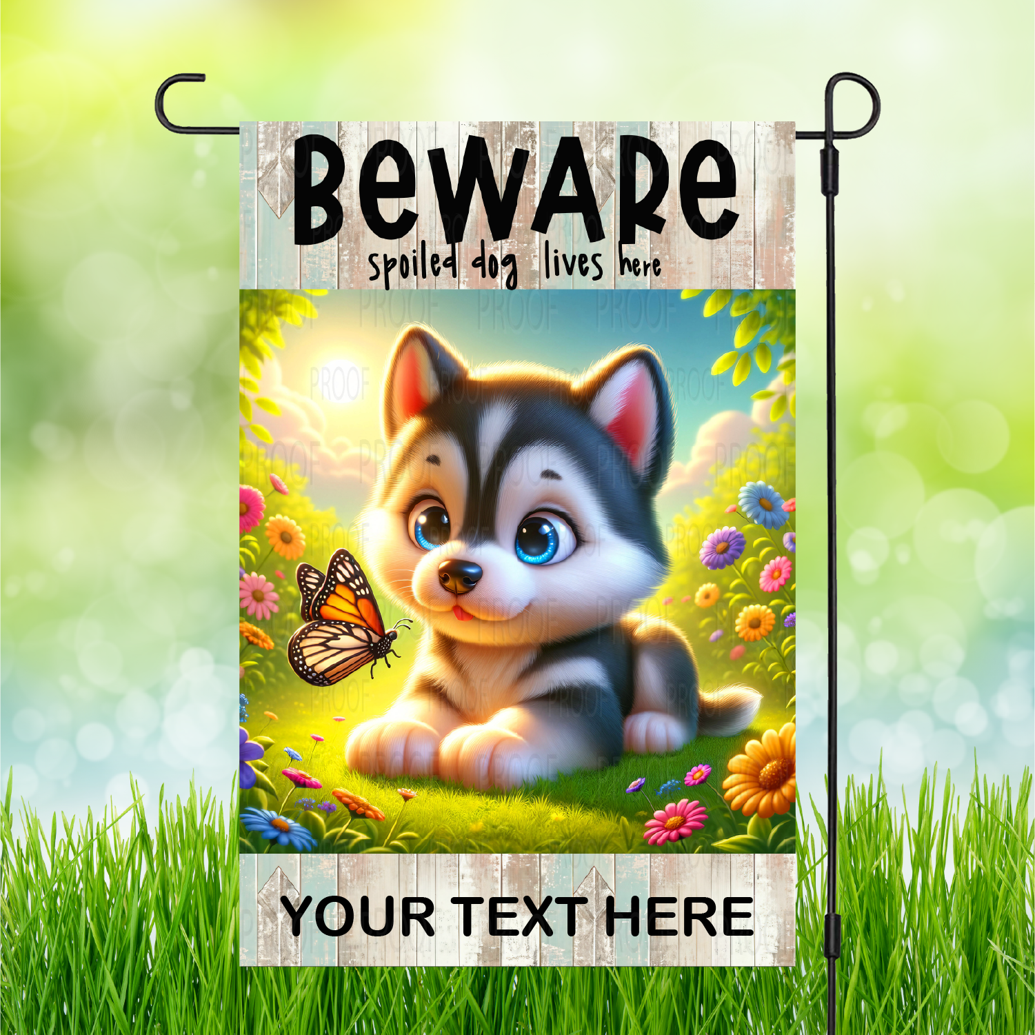 Stand out from the pack with our "Beware" Spoiled Dog Garden Flags! Personalization available to make it truly one-of-a-kind. Let your backyard be the talk of the neighborhood.