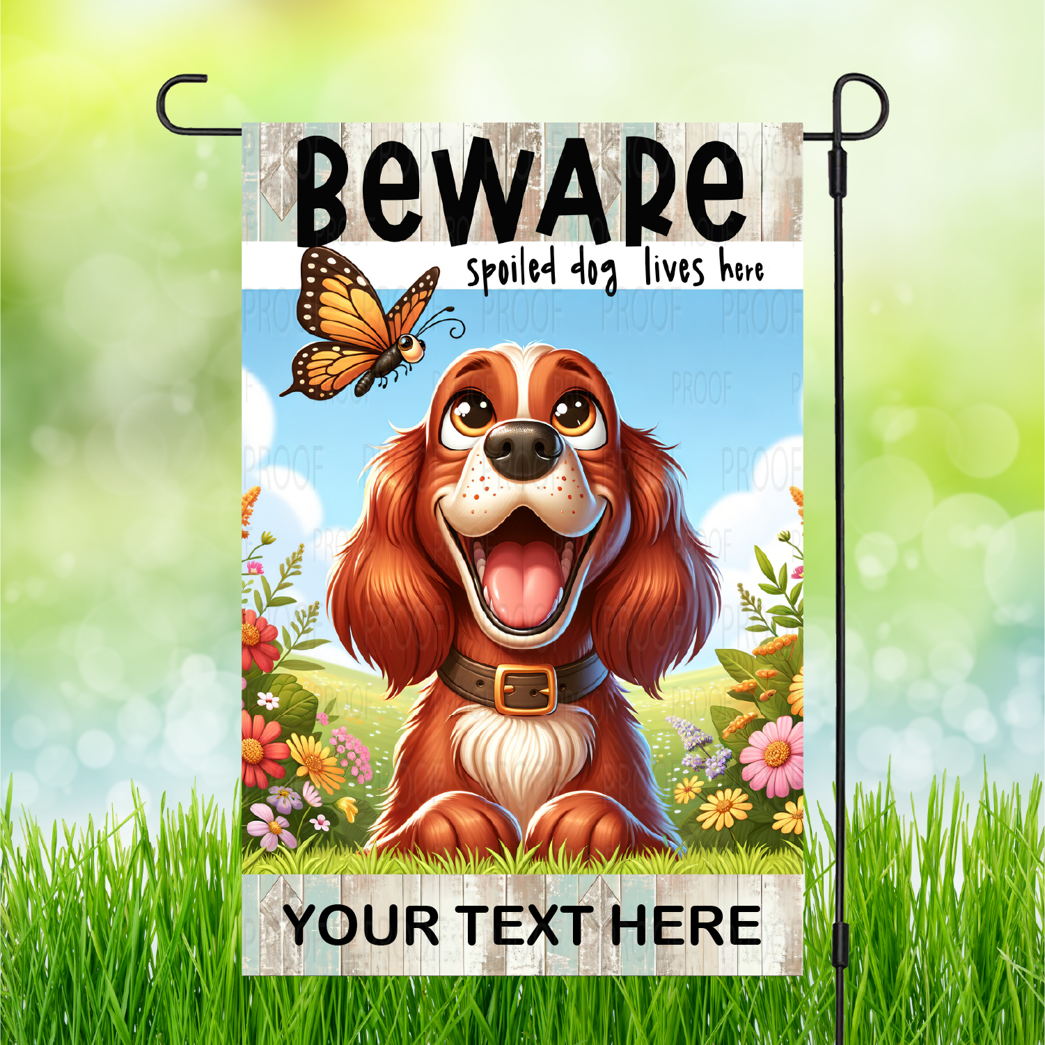 Stand out from the pack with our "Beware" Spoiled Dog Garden Flags! Personalization available to make it truly one-of-a-kind. Let your backyard be the talk of the neighborhood.