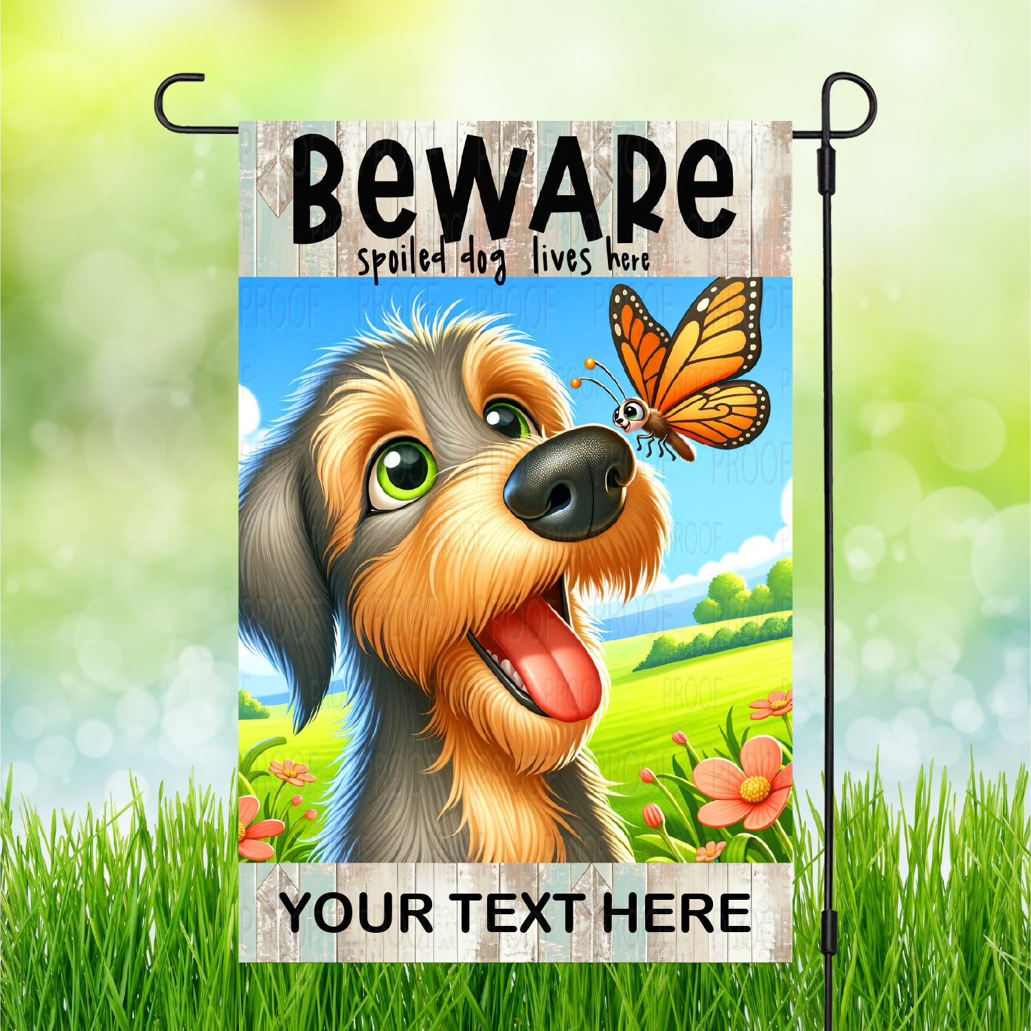 Stand out from the pack with our "Beware" Spoiled Dog Garden Flags! Personalization available to make it truly one-of-a-kind. Let your backyard be the talk of the neighborhood.