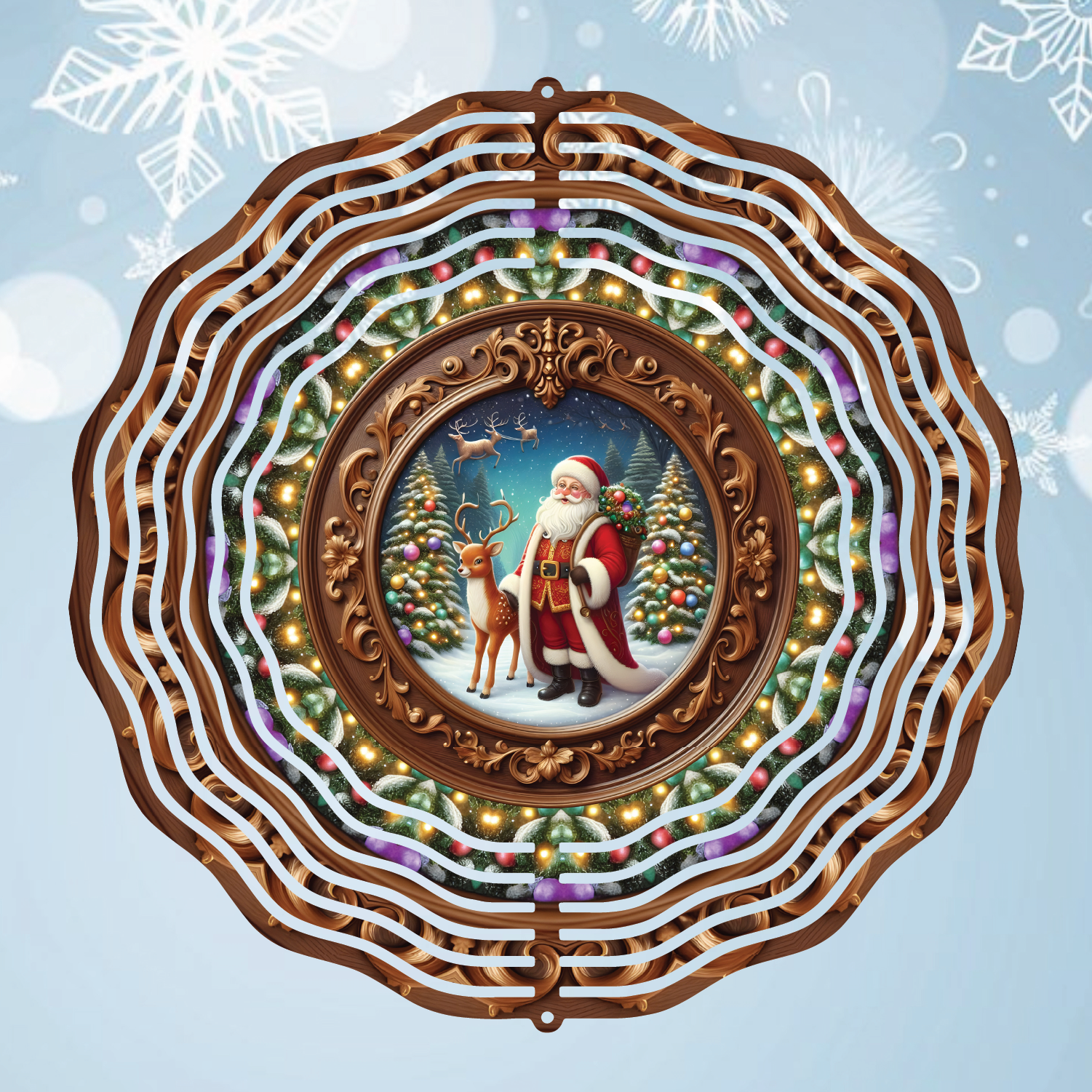 Ho ho ho! Let jolly old Saint Nick spin his way into your holiday display with this merry Santa wind spinner. As the breeze catches it, watch Santa twirl and dance, spreading Christmas joy throughout your yard. This whimsical decoration brings festive energy and movement to your outdoor space, making it the perfect centerpiece for seasonal celebrations. Your neighbors won't be able to resist smiling at this cheerful addition!