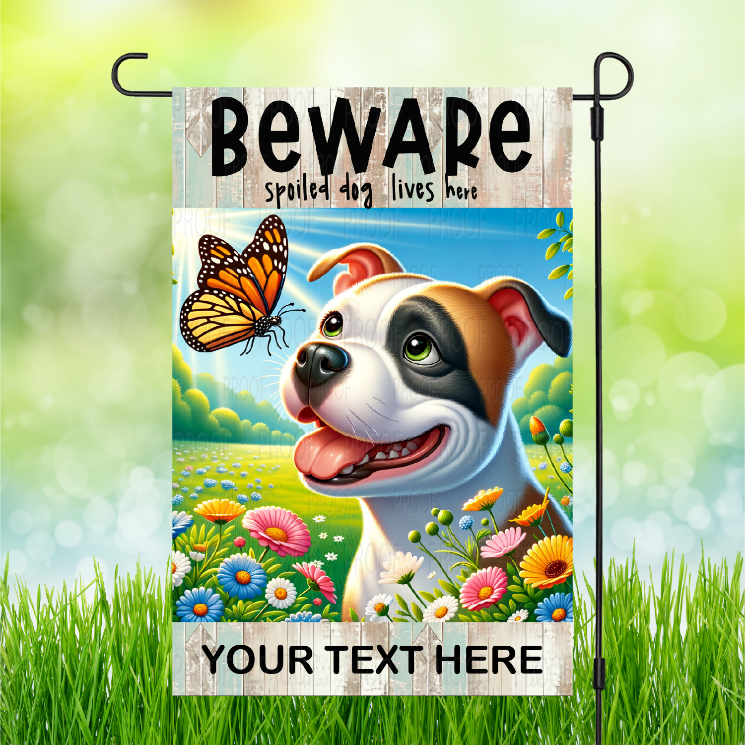 Stand out from the pack with our "Beware" Spoiled Dog Garden Flags! Personalization available to make it truly one-of-a-kind. Let your backyard be the talk of the neighborhood.