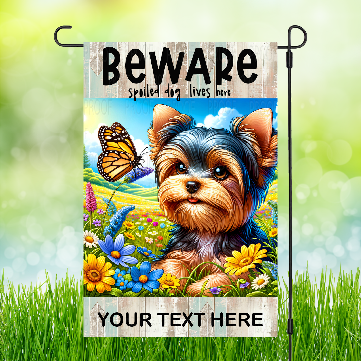 Stand out from the pack with our "Beware" Spoiled Dog Garden Flags! Personalization available to make it truly one-of-a-kind. Let your backyard be the talk of the neighborhood.